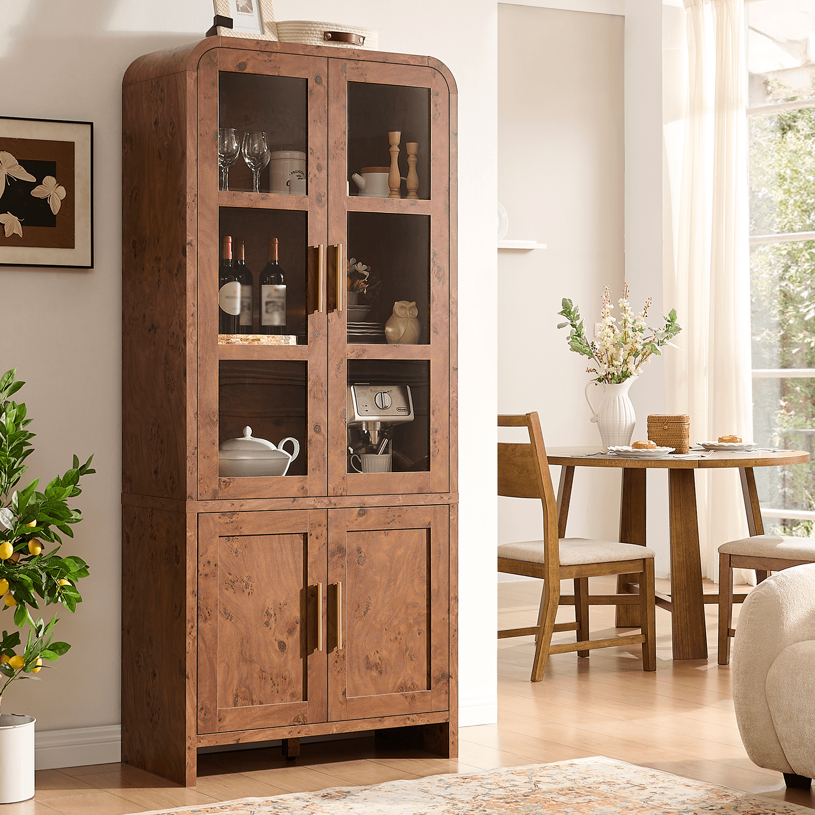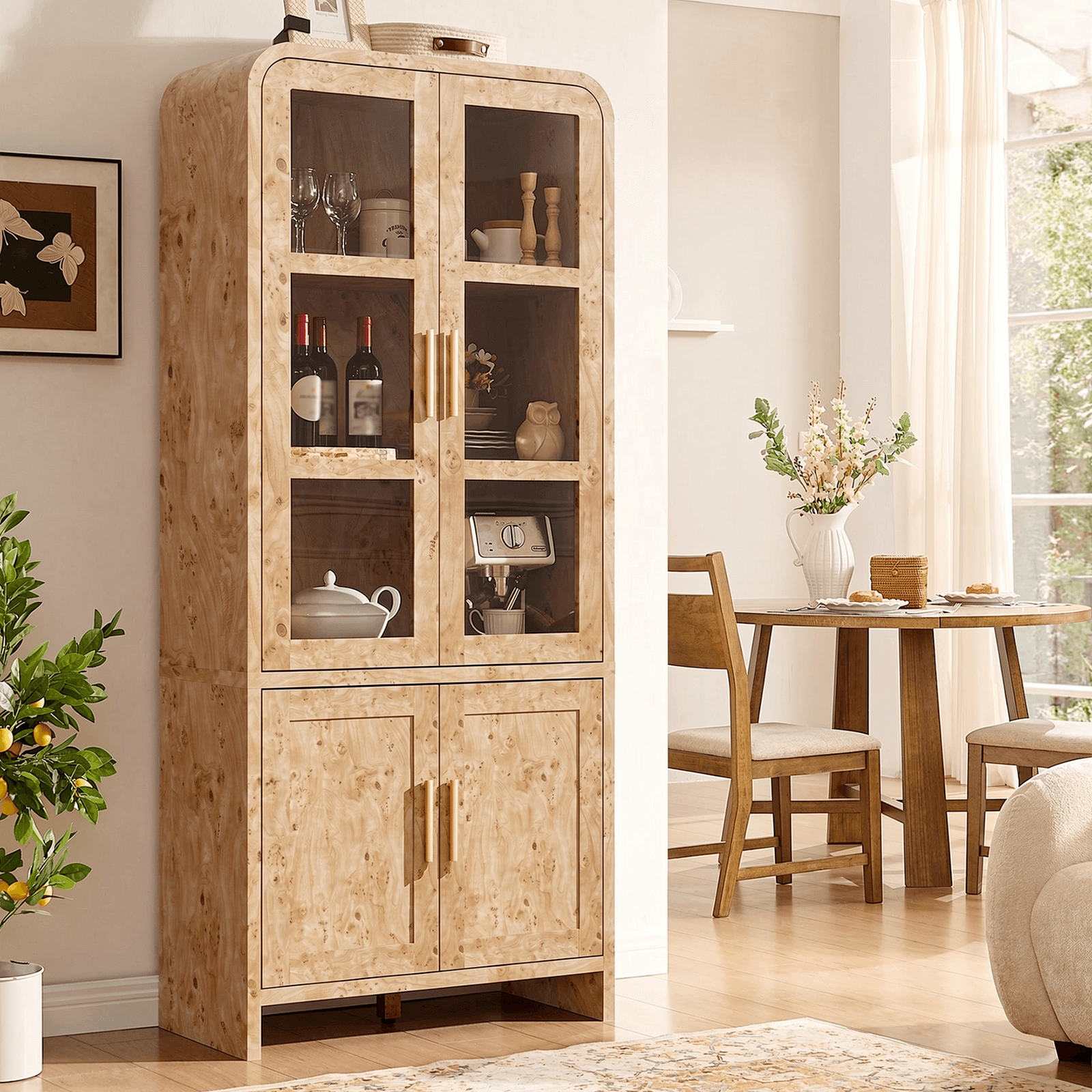 $319.97$319.97/Elevate your home with our 77" Curved Pantry Cabinet. Featuring a unique Dark Burl finish and modern farmhouse charm, this tall wooden hutch offers stylish, adjustable...