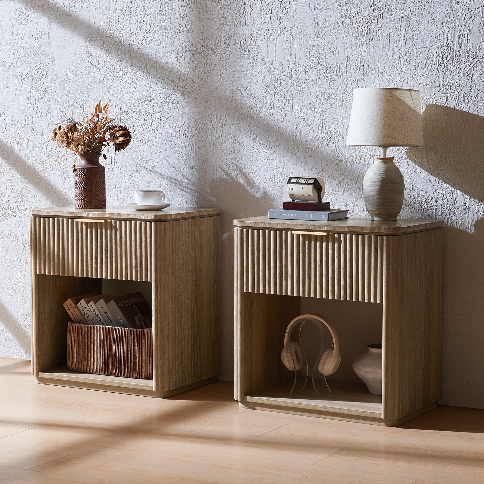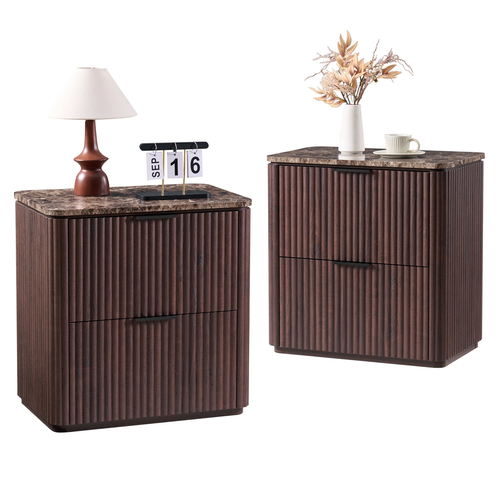 DelArk 2-Drawer Fluted Nightstand with Marble Top