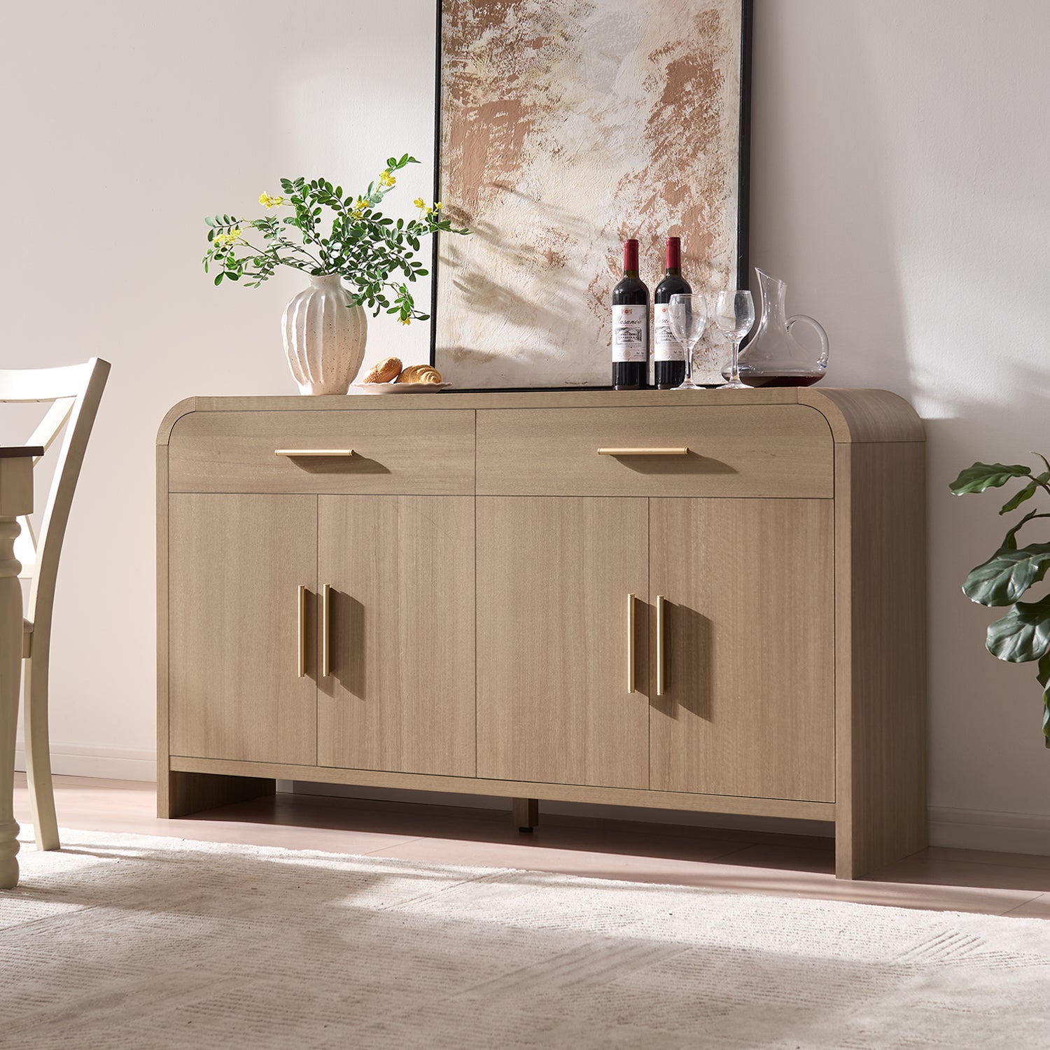 From $299.99From $299.99/Discover the Cozyshome 59.7" Sideboard. With its unique curved design and Light Burl finish, it’s the perfect modern buffet or TV stand for your living room.