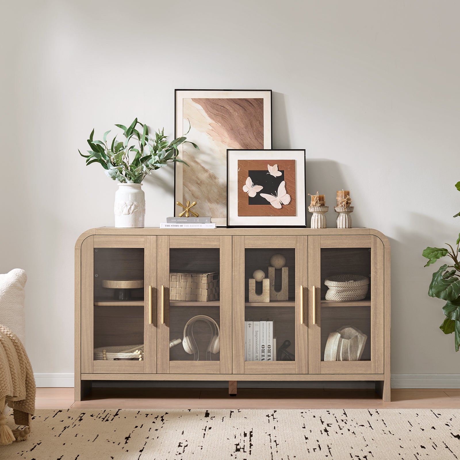 Modern 59" Sideboard Cabinet - 4 Glass Doors