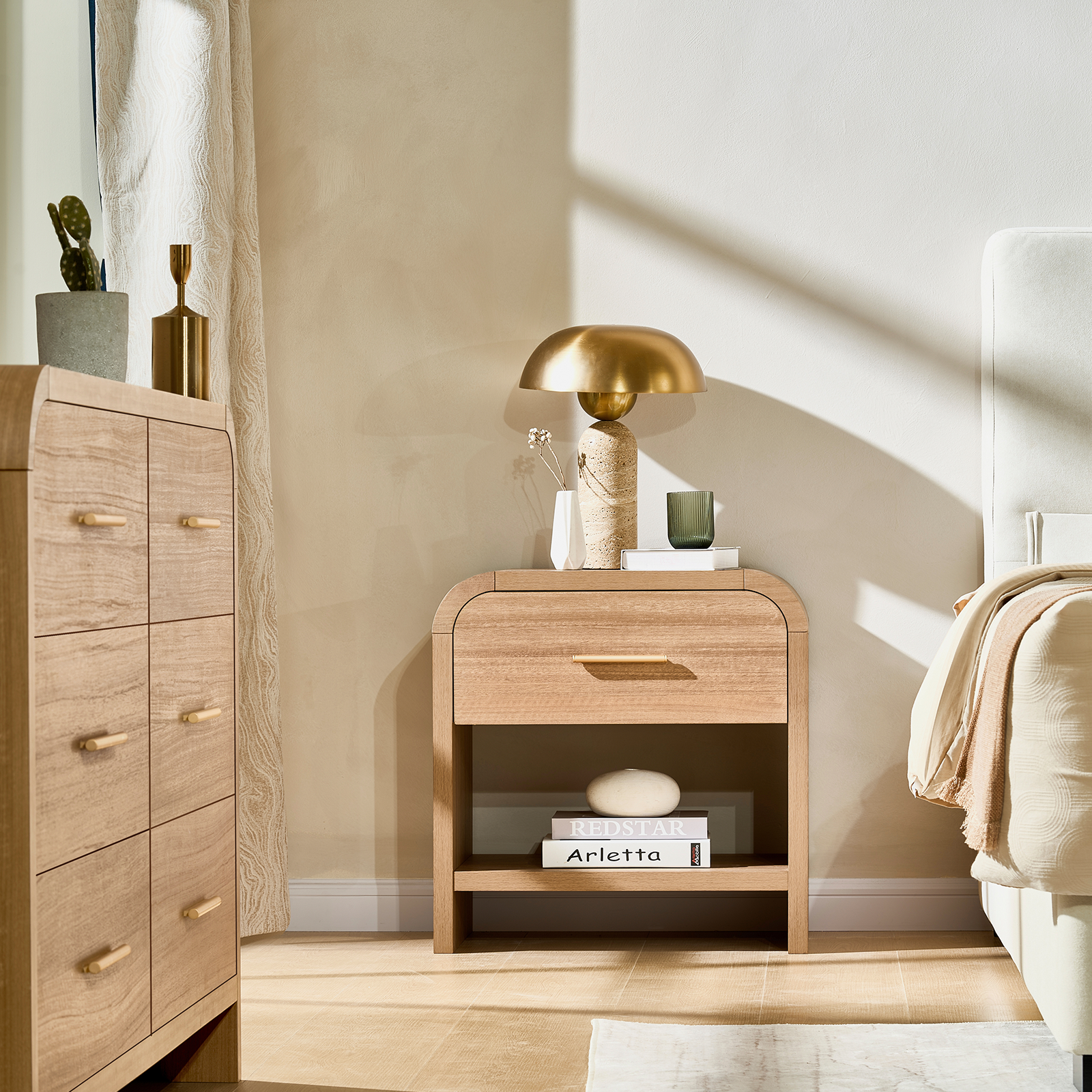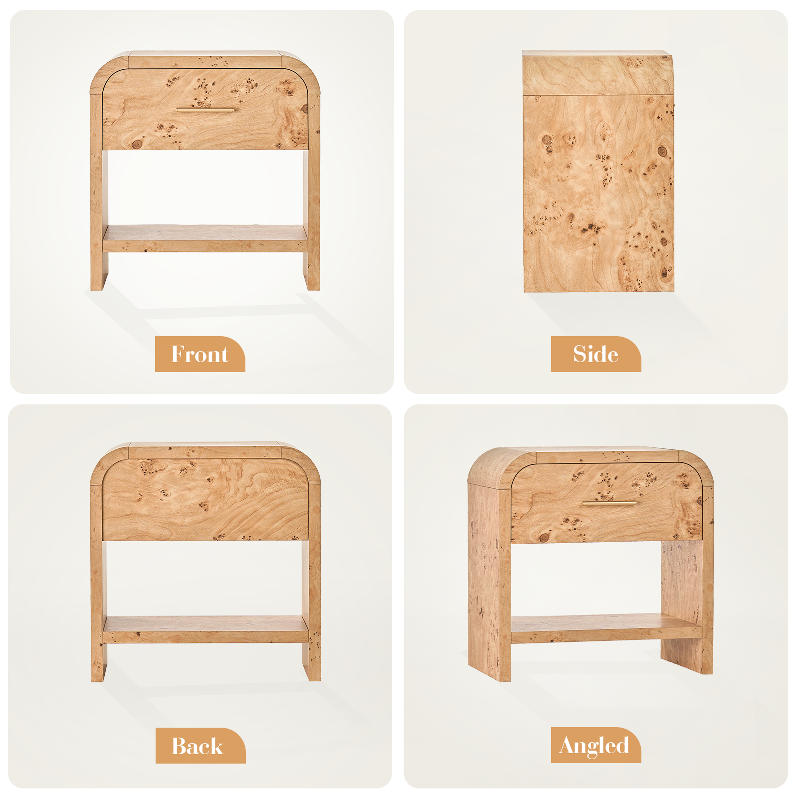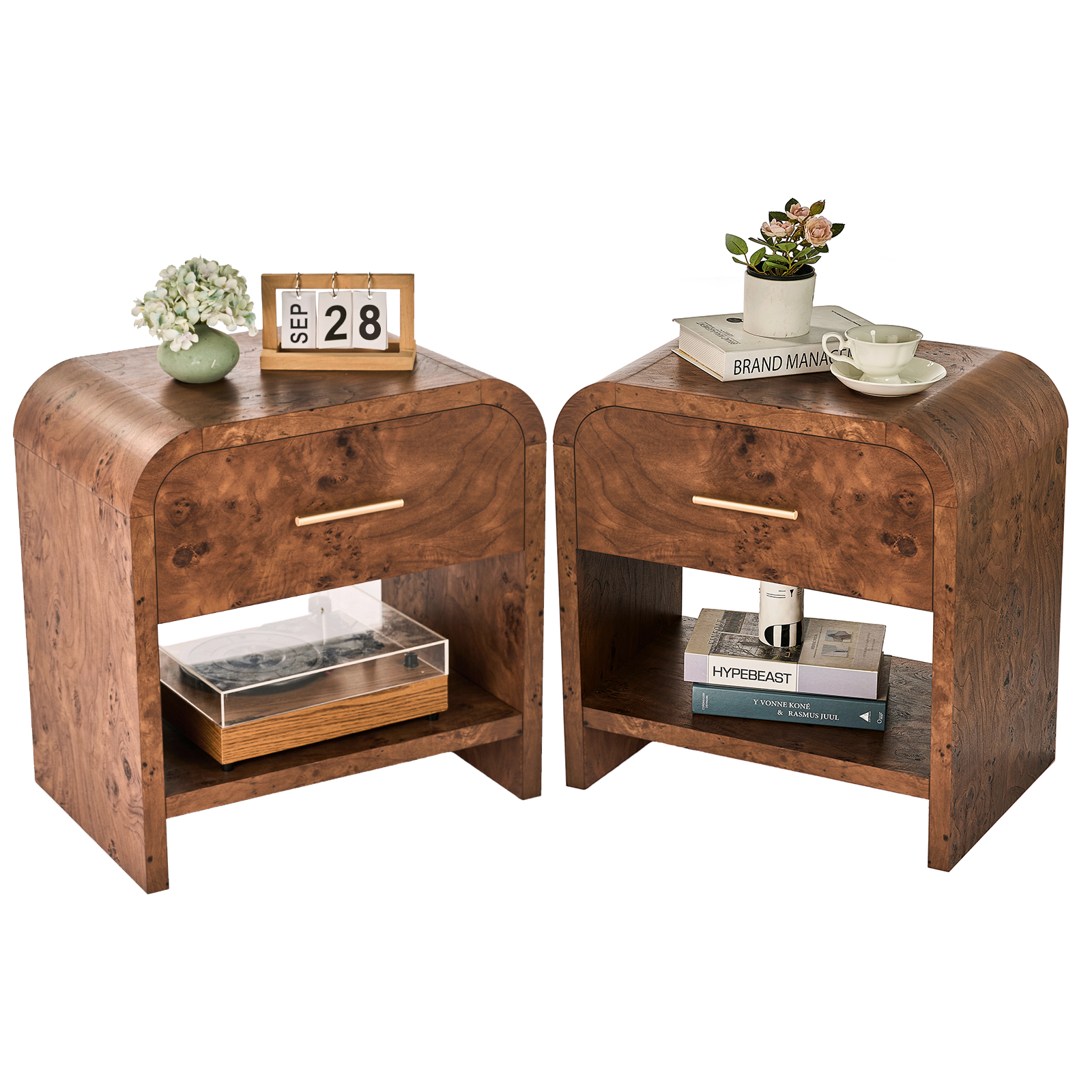 - 【Unique Curved Design, adding Security】Our wood night stand showcases a unique curved design that blends elegant lines with unique wood grain pattern surface for enhanced visual appeal and modern aesthetics. Smooth rounded corners, not only simplify the appearance, but more importantly, improving safety.Preventing bumps and collisions.Just like a tactile work of art, adding warmth to your home.