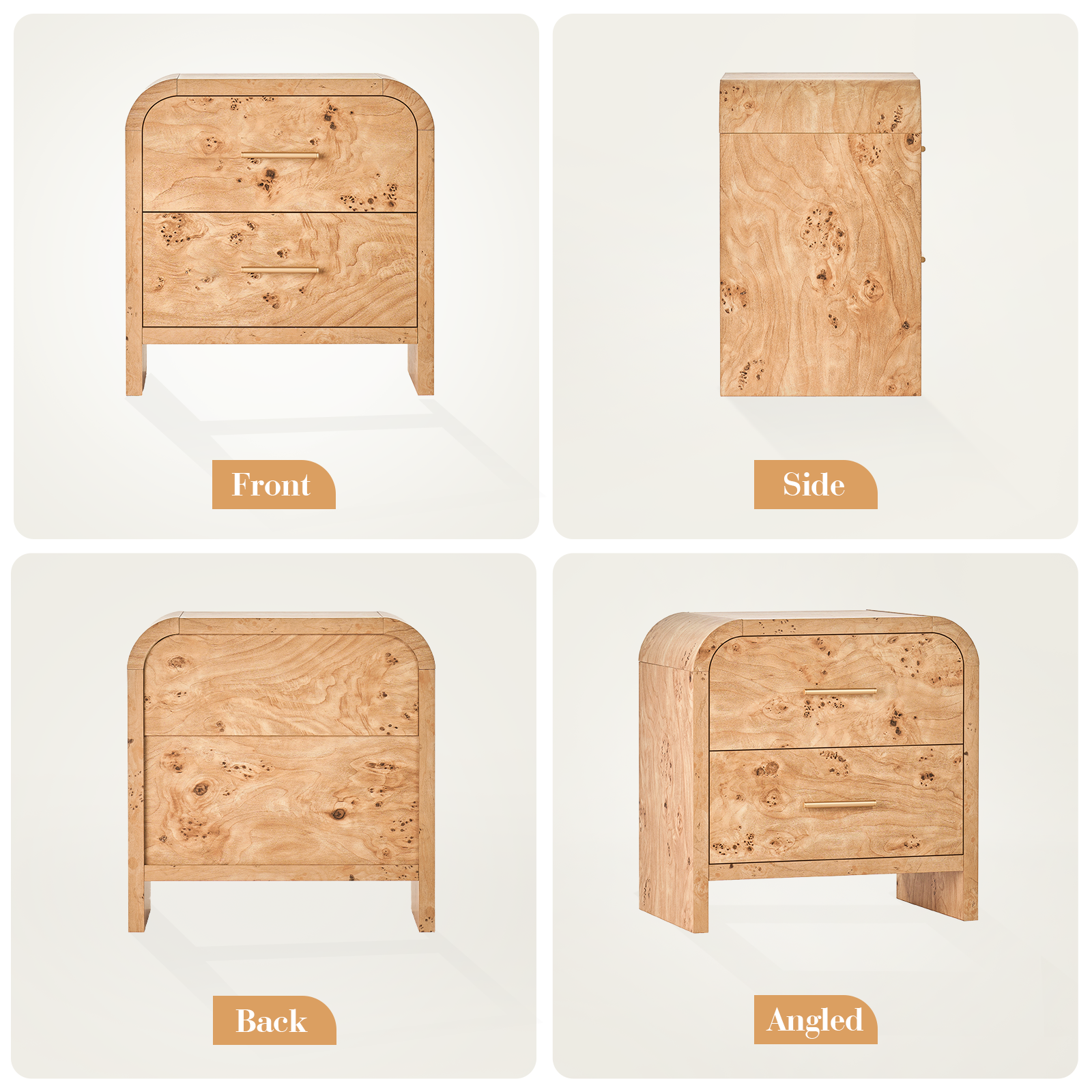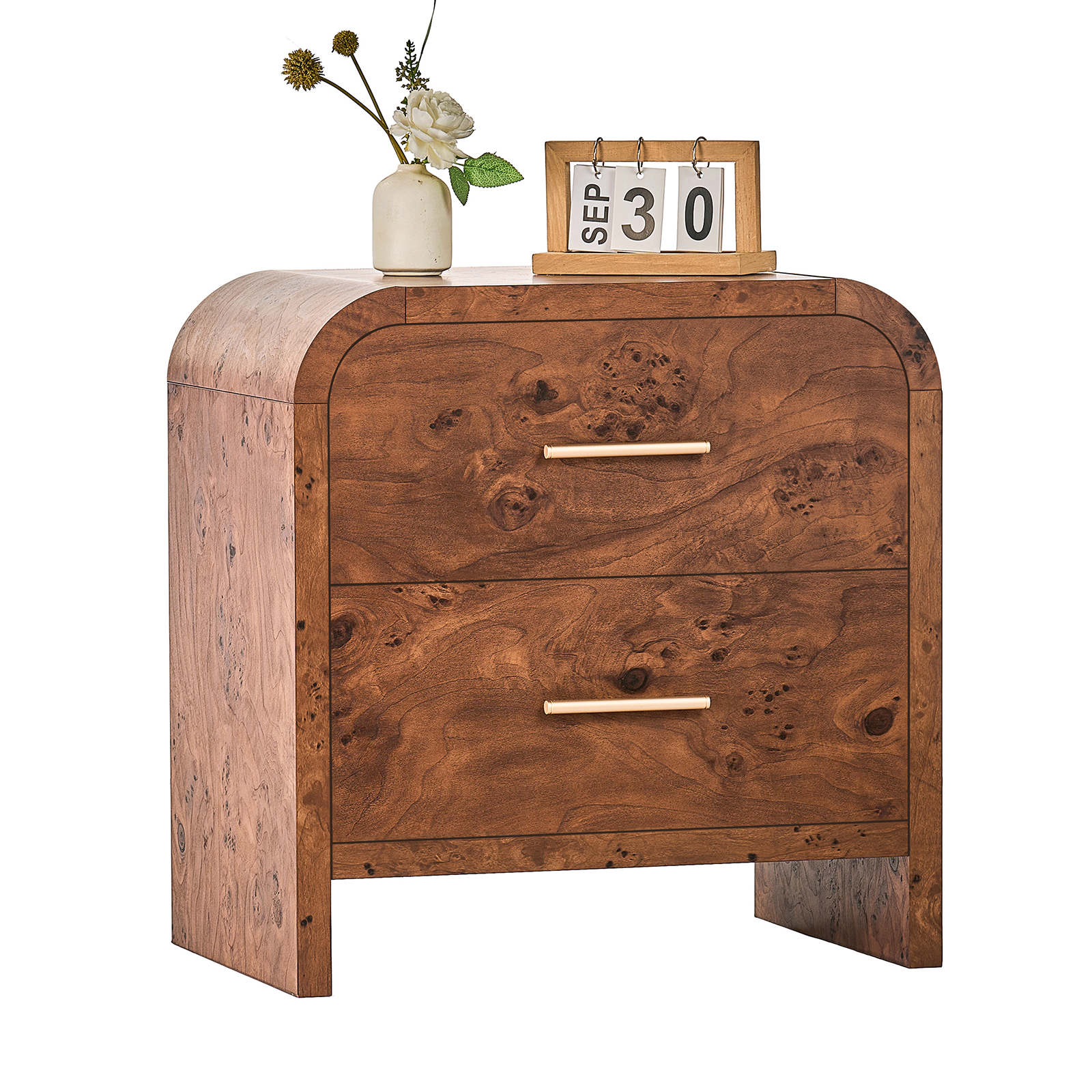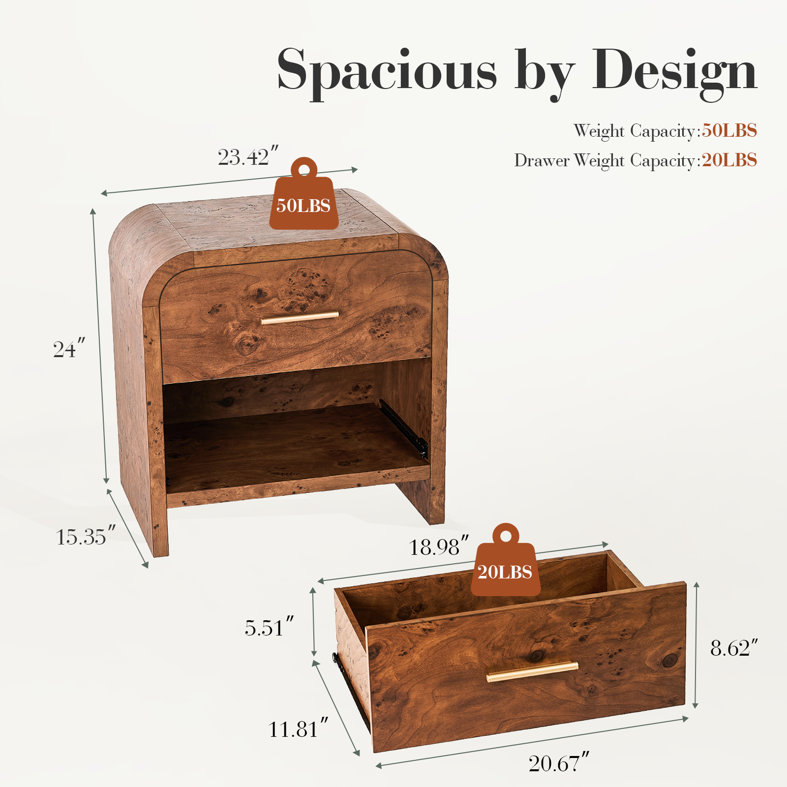 - 【Unique Curved Design, adding Security】Our wood night stand showcases a unique curved design that blends elegant lines with unique wood grain pattern surface for enhanced visual appeal and modern aesthetics. Smooth rounded corners, not only simplify the appearance, but more importantly, improving safety. Preventing bumps and collisions. Just like a tactile work of art, adding warmth to your home.