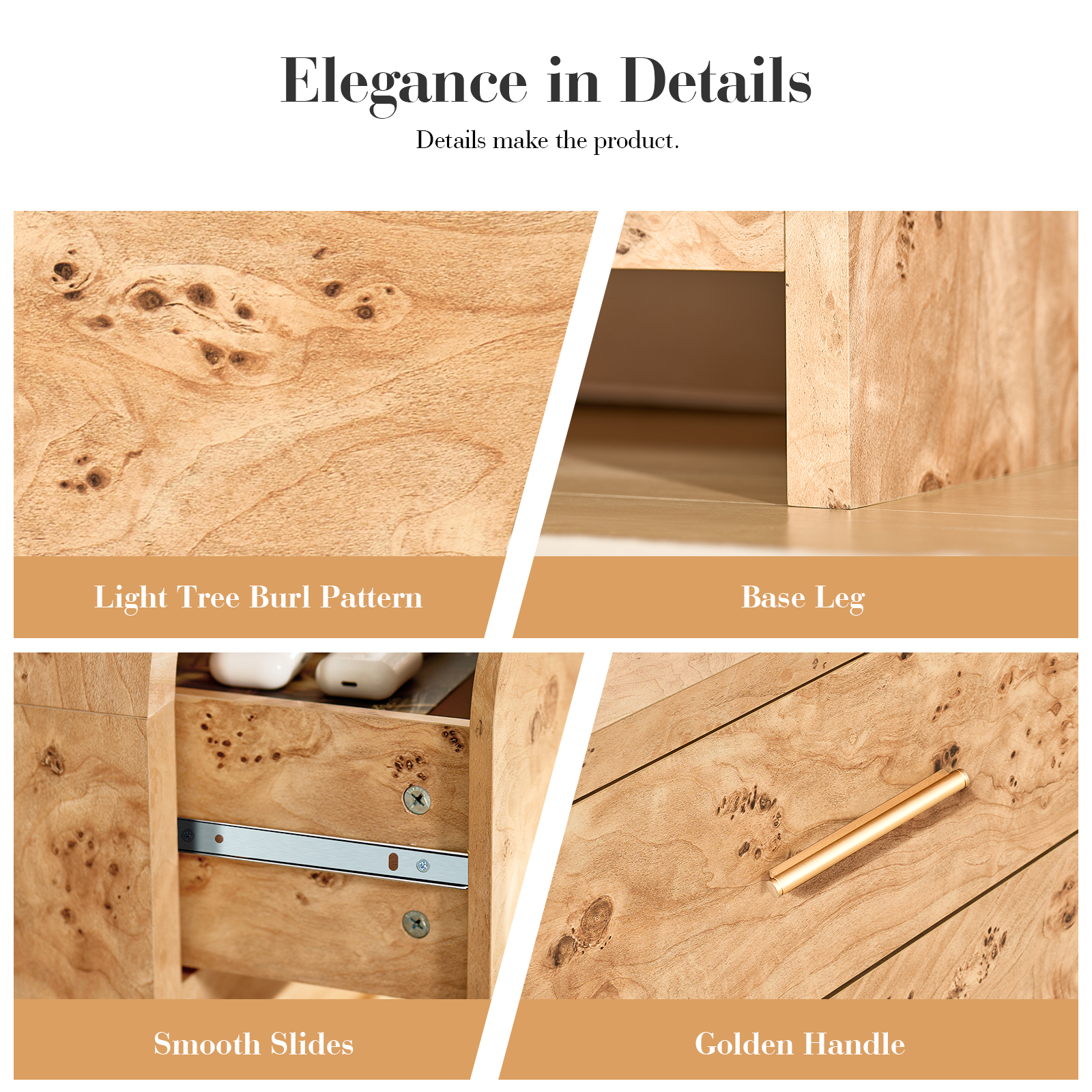- 【Durable & Sturdy & Strong Load-bearing Capacity】Constructed from optimal FSC-certified P2 thickened engineered wood. Thickness of the Wooden board up to 1.18 inches. Therefore, it possesses exceptionally strong resistance to deformation, remaining unaffected by environmental temperature and humidity changes, and it also offers strong load-bearing capacity. The top can hold up to 50lbs and the drawers can hold up to 20lbs. Complemented by elegant golden metal handle, this bedside table combine durability with aesthetic appeal.