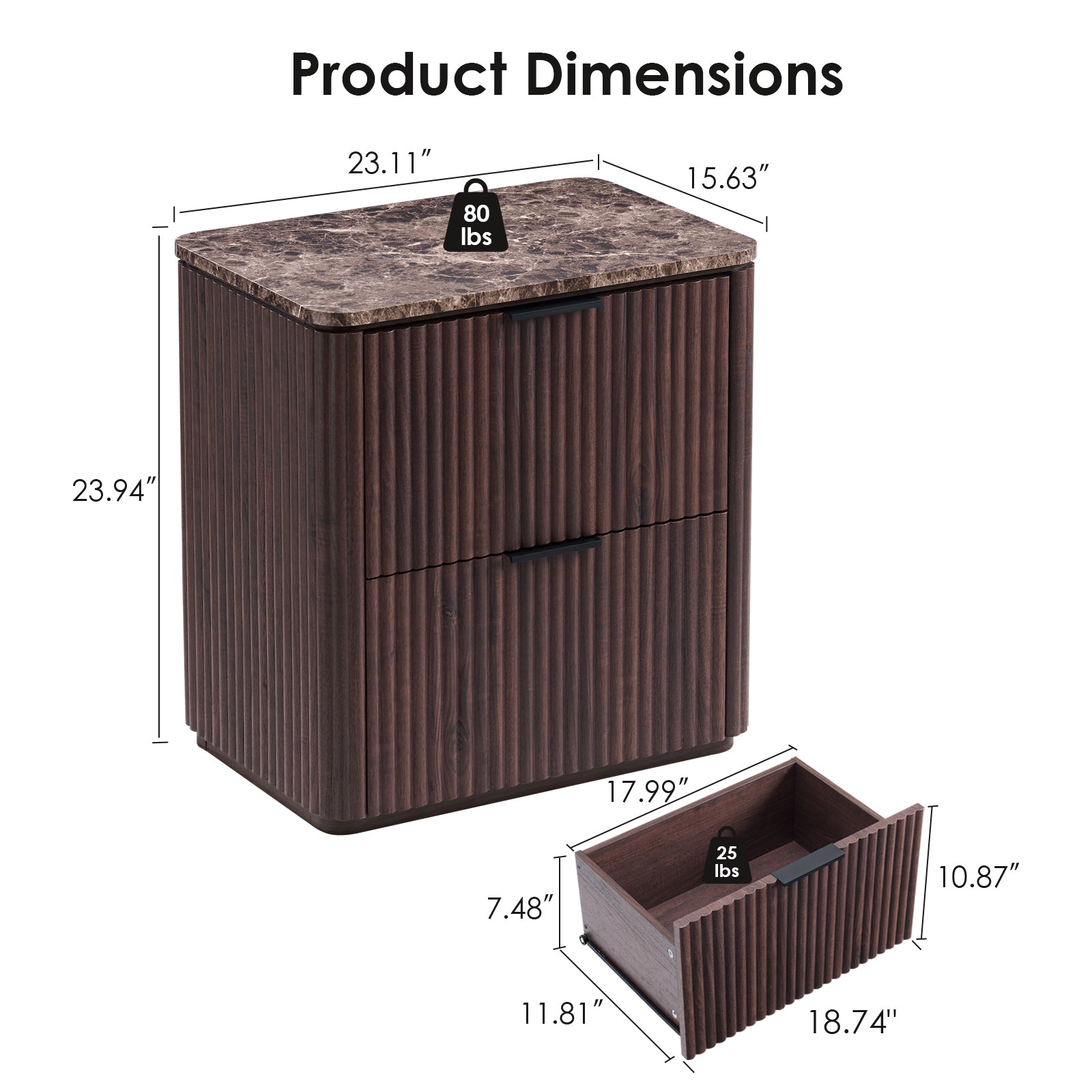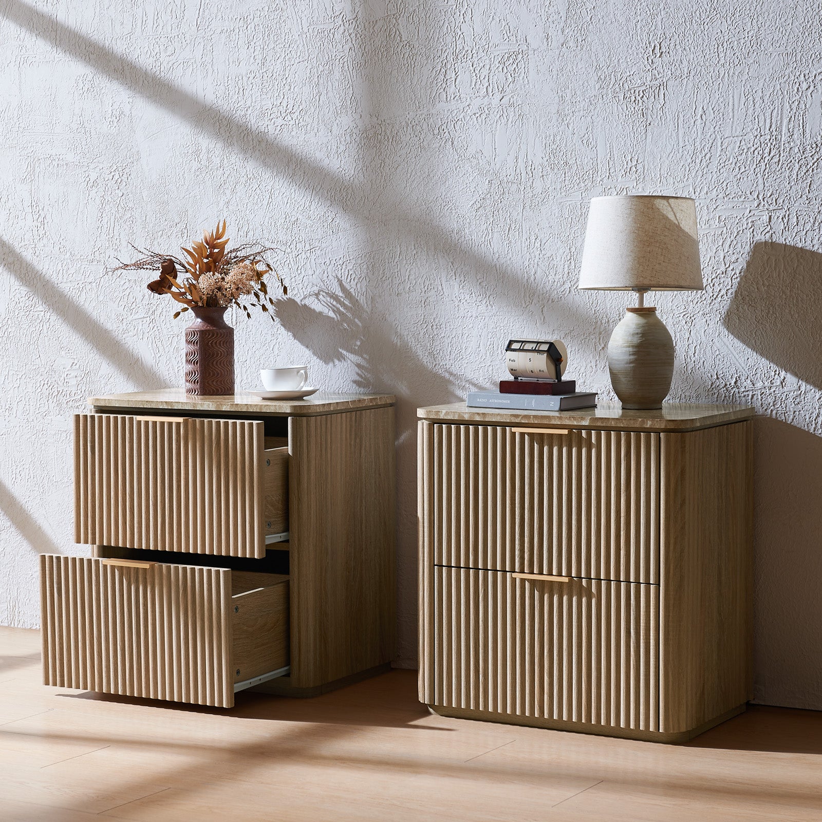 DelArk 2-Drawer Fluted Nightstand with Marble Top