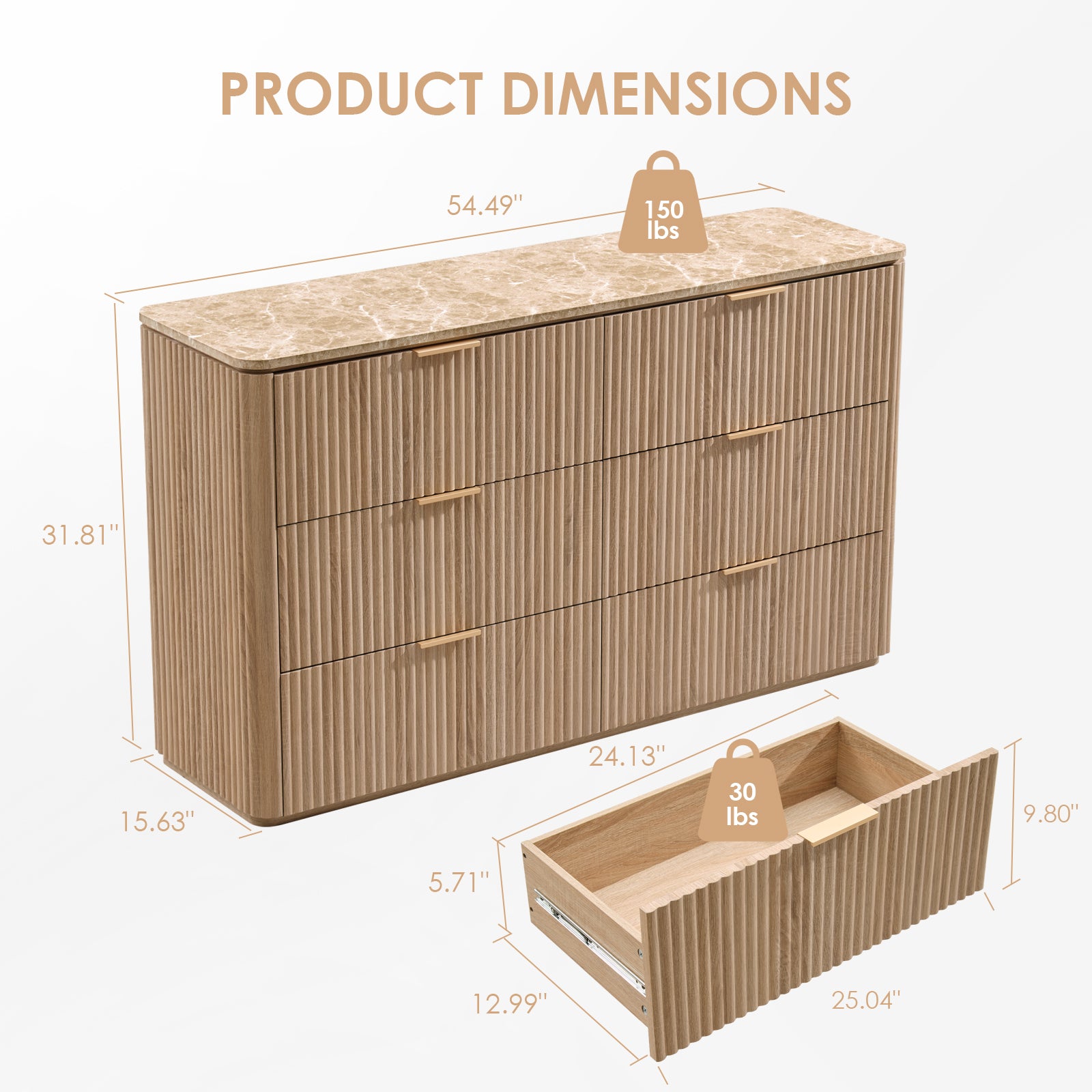 DelArk Fluted 6-Drawer Dresser with Marble Top