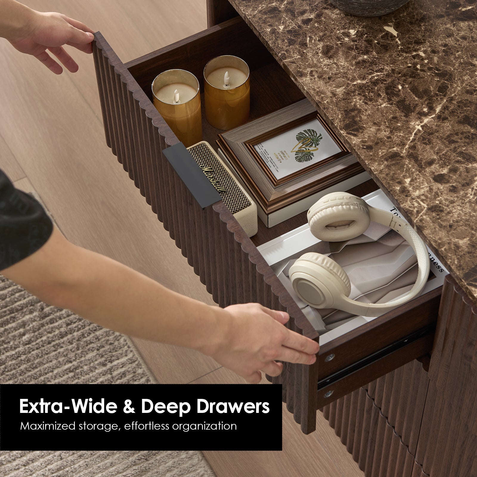 - Sturdy & Durable Construction – Crafted from 1.97" thick MDF and P2-grade engineered wood, this modern dresser is designed for stability, durability, and easy care. The melamine faux marble top resists scratches and stains, while the reinforced steel base support ensures long-term reliability for daily use